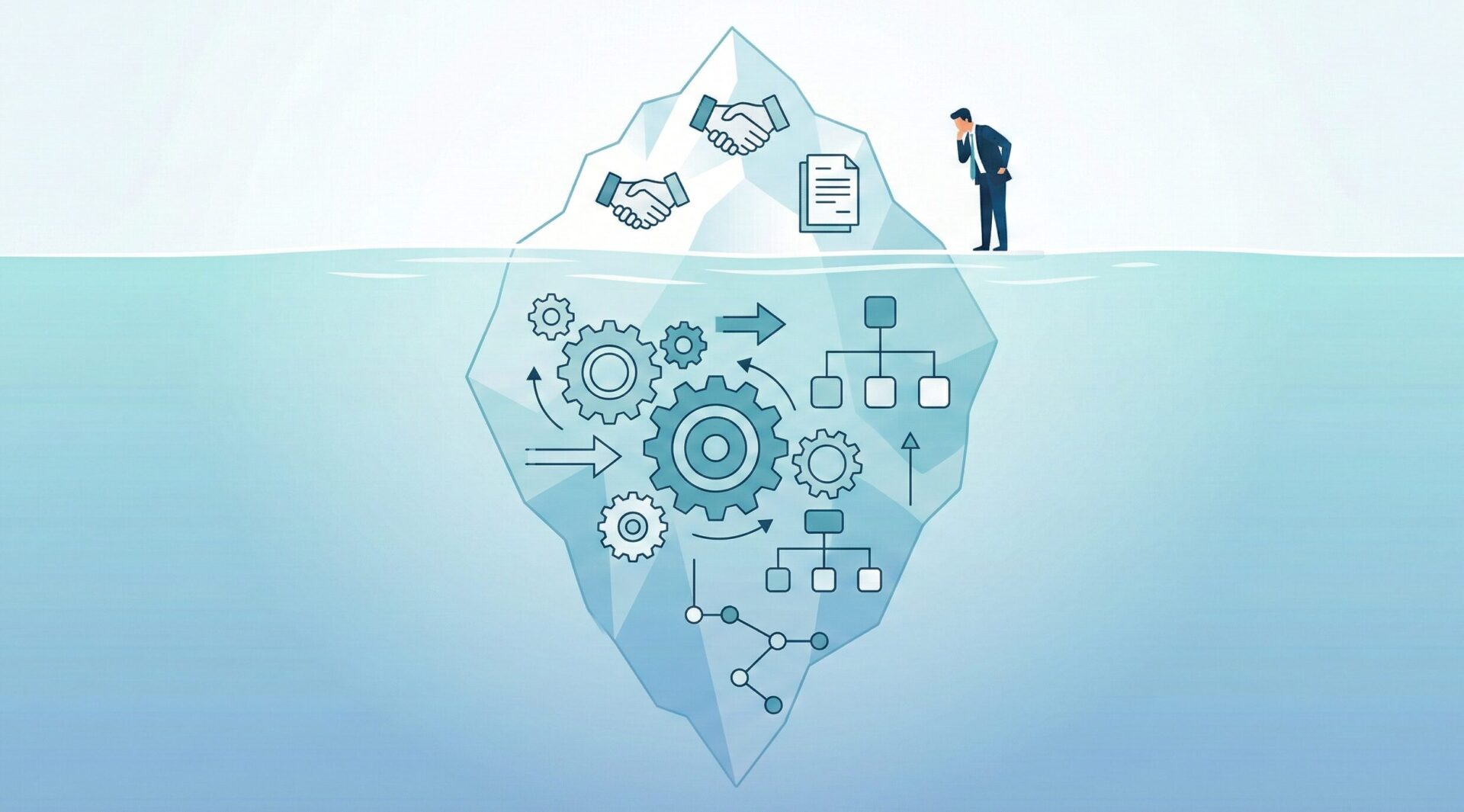 文化はよく氷山に例えられます。海面に見えている振る舞いや習慣は、全体のわずか1割。残りの9割——人々の行動を突き動かす「価値観」や「思考の前提」は、深いところにあります。